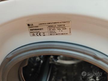LG F4J6VY1W. Tipo di carica: Caricamento frontale. Capacità cestello: 9 kg, Classe di efficienza della centrifuga: A, Silenziosità (centrifuga): 74 dB, Silenziosità (lavaggio): 53 dB, Velocità di centrifuga massima: 1400 Giri/min. Classe efficienza energetica: A+++-30%, Consumo energetico annuale: 160 kWh, Consumo annuale di acqua: 11000 L. Colore del prodotto: Bianco. Larghezza: 600 mm, Profondità: 560 mm, Altezza: 850 mm