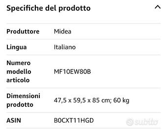 Lavatrice Midea MF10EW80B, Lavatrice Slim, Carica Frontale, 8 kg, 1400 Giri, Classe A. Prezzo trattabile. Acquistata a febbraio e sostituita solo ed esclusivamente per cambio con lavasciuga per comodità di spazi.