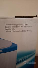 Mini Lavatrice Portatile 1,5Kg Capienza serbatoio acqua 20L pari al Nuovo caratteristiche quelle che vedete in foto come descritto nello scatolo prezzo 100 Euro Se Interessati Contattare al Numero 3299217356