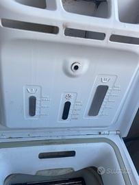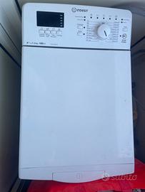 Lavatrice a carico dall’alto. Indesit 6kg. Misure: lunghezza 60 cm, larghezza 40 cm, altezza 85 cm.