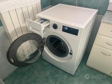 Vendo perché casa da liberare causa passaggio di proprietà, lavatrice Samsung 8 kg acquistata a settembre 2025, carico frontale, centrifuga 1400 rpm, lavaggio ecobubble, collegamento WI-FI, controllo con app AI Energy mode. Classe energetica A, misure 600x850x550 cm, peso 65 kg