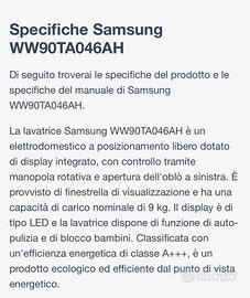 Vendo lavatrice Samsung come nuova, garanzia scaduta gennaio 2026
