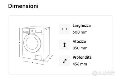 Lavatrixe Slim, capacitá 8kg, dimensione 60LxP46xH85. Fessura Add Wash per aggiungere capi durante lavaggio.