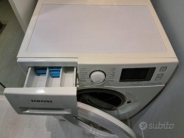 Come da titolo, vendo lavatrice Samsung WF60F4E5W2W funzionante ma con difetto, l'elettrodomestico funziona e lava bene, ogni tanto si blocca il cestello per via di un presunto problema a un relè della scheda, dando un leggero colpo sulla parte frontale della lavatrice si sollecita il componente, dopodiché il lavaggio prosegue normalmente.