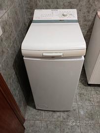 Lavatrice Modello Ignis con carico dall' alto, ideale per bagni stretti, classe energetica A+, capacità di carico 6kg e la velocità massima di centrifuga di 1000 giri.Il pannello comandi è ben conservato, mentre la carrozzeria esterna presenta alcune evidenti trace di ruggine nella zona del coperchio.L'interno mostra il cestello e i vani per i detersivi integri e ben tenuti.L=40;l=59;H=85/89(il punto più alto).Ritiro a mano.
