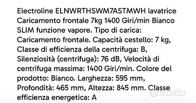 Lavatrice slim Electroline 7 kg. Taglio perfetto per una stanza piccola, usata pochissimo, quasi nuova. Prezzo trattabile. Ritiro a Pero