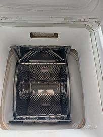 Specifiche Tecniche Capacità: 6 kg, adatta a 2-3 persone o bucati piccoli. Centrifuga: 1000 giri/min (classe C), rumorosità 76 dB centrifuga / 60 dB lavaggio. Classe energetica: A+ (vecchia scala, equivalente F nuova UE; 0.9 kWh/ciclo, 55 L acqua). Funzionalità Principali Pulsanti per lavaggio a freddo, prelavaggio turbo e turbo lavaggio; 6 sensi (sensori auto per carico/detergente). Programmi eco/rapido, partenza differita, Aquastop, controllo schiuma. Dimensioni slim: 40x60x90 cm, ideale per spazi ristretti. Buono stato, una molla della chiusura dall'alto lenta non spedisco, trattabile