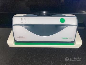 1 Folletto VG100+ Multisuperficie 1 Piastra di appoggio 2 panni in microfibra Detergente GC100 200 ml Caricatore Rimuove lo sporco, aspira senza lasciare striature. Grazie al nuovo panno soft, MF100, si potranno pulire piastrelle, mobili da cucina, da bagno, armadi, ecc. Inoltre, un nuovo detergente appositamente dedicato alla pulizia di vetri e specchi, rimuoverà anche il calcare più ostinato. Grazie a ciò risparmierai metà del tempo rispetto al lavaggio con panno e secchio. Lo stato di carica della batteria viene visualizzato con un indicatore a LED. I due panni in microfibra sono inoltre lavabili in lavatrice. Grazie alla sua maneggevolezza, alle dimensioni compatte e al suo peso di solo 1 kg, VG100+ consente risultati perfetti.