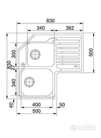 Lavello Angolare Incasso Acciaio inox con Sgocciolatoio a sinistra Frankie - Base 90 cm inox - Dimensioni 83x83x50 cm - Bordo Standard - Dimensioni Vasche 34x40x20 / 30x34x19 cm.