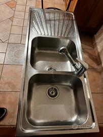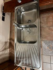 Vendo Lavello Cucina in acciaio 115x50, due vasce e gocciolatoio completo di Miscelatore e scarico