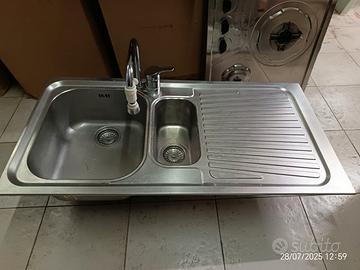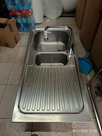 lavello cucina incasso inox da 100 a 1 vasca + vaschetta per base da 60 in acciaio inox opaco martellato DEKOR antimacchia e antigoccia. insieme REGALO miscelatore