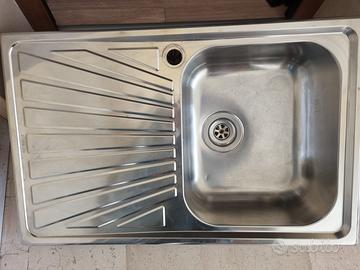Lavello in acciao per cucina, con sgocciolatoio sinistra. Misure 79x50 cm