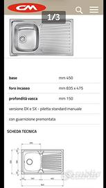 Lavello CM per cucina da incasso nuovo tolto dalla scatola solo per fotografia.