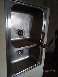 lavello, doppia vasca acciaio inox. misure: profondità 50 cm. larghezza 77 cm con miscelatore