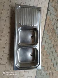 Lavello in acciaio due vaschette più gocciolatoio lato sinistro predisposto sia per miscelatore a parete che su lavello