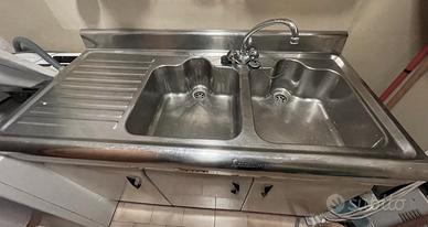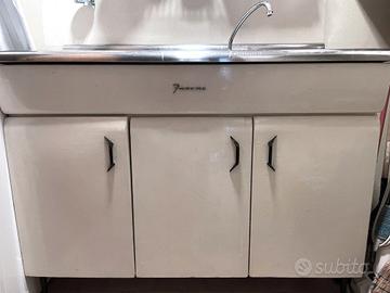 lavello faacme vintage in metallo a due vasche. con mobile in metallo senza rubinetto disponibili sifoni come in foto dimensioni 120x100x50