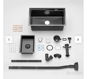 VENDO NUOVO IMBALLATO PER MISURA ERRATA Lavello da cucina a 1 vasca con vasca di stoccaggio - Lavello da cucina in acciaio inossidabile nero Lavello da cucina sottotop (68×43×21CM)