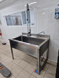 Vendo lavello professionale in inox per ristorante/macelleria/gastronomia con doccetta completa e pedalini misure 120x70