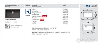 Lavello ancora imballato nella sua confezione originale, per errato acquisto, Della Blanco modello Subline 700 U versione sottotop in fragranite nero