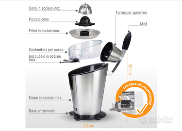 🍊 600 WATT POTENTE : Spremiagrumi elettrico in acciaio inox LEBENLANG con braccio a leva e motore estremamente potente - Electric citrus juicer per arance/limoni da ristorazione silenziosi e senza BPA