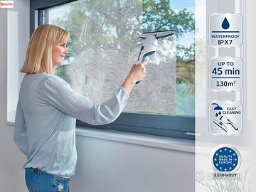 Informazioni su questo articolo Pulizia assoluta – Il lava vetri finestre aspirante pulisce tutte le superfici lisce senza lasciare gocce o aloni fastidiosi, per un risultato davvero splendente Aspirazione automatica – Il tira acqua elettrico dispone di una funzione di aspirazione automatica e si svuota facilmente, grazie al tappo del serbatoio sul manico Serbatoio capiente – Il tergivetro per doccia, dalla forma stretta, dispone di un serbatoio integrato nel manico che consente la completa aspirazione delle finestre Batteria potente – Il tergivetro elettrico è dotato di una potente batteria agli ioni di litio che vanta una autonomia di 45 minuti per pulire fino a 130 m² Confezione - Leifheit Nemo lavavetri professionale con 1 tergivetro per finestre, carica batteria e istruzioni d'uso, colore bianco, articolo numero 51030