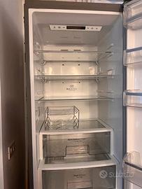 2 ampi cassettoni nella zona congelatore a scorrimento e 1 con ribaltina. Nella parte superiore del frigorifero, nella porta, 4 balconcini di cui uno ampio per le bottiglie da 2 L; display luminoso, luce e allarme sonoro per segnalare la porta rimasta aperta. Nella parte interna 3 ripiani in vetro regolabili più uno fisso su uno dei 2 ampi cassetti, uno per la carne l'altro per le verdure. Lo sbrinamento è automatico. Lievi difetti dovuti all'usura (tutti pezzi sostituibili) che non pregiudicano il corretto uso. Per domande o ulteriori foto resto a disposizione. Ritiro a carico dell'acquirente.
