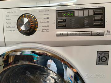 6kg slim 1000 giri, 44cm di profondità, Perfetta e pulita, no residui di detersivo nella vaschetta, no ruggine, usata pochissimo. Motore inverter Direct Drive, garantito 10 anni, molto silenziosa. Programmi: Lavaggi Frequenti, Cotone, Cotone Rapido, Delicati, Lavaggio a mano/Lana, Rapido 30 minuti; Baby care (Speciale Bambini), Intensivo (95°). Peso 57 kg, Misure: 660x545x885