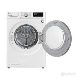 LG RH80V9AVHN Asciugatrice 8 kg Libera installazione Carica frontale A+++. Posizionamento dell’apparecchio: Libera installazione, Tipo di carica: Caricamento frontale, Sistema di asciugatura: Pompa di calore. Capacità cestello: 8 kg, Classe efficacia di asciugatura: A, Programmi di asciugatura: Mix, Sport, Rapido, Delicati/Seta, Cotone, Asciugamano, Sintetico, Ferro da stiro a secco. Classe efficienza energetica: A+++, Consumo energetico: 1,47 kWh, Consumo energetico annuo: 176 kWh. Profondità: 690 mm, Larghezza: 600 mm, Altezza: 850 mm. Larghezza imballo: 660 mm, Profondità imballo: 702 mm, Altezza imballo: 920 mm