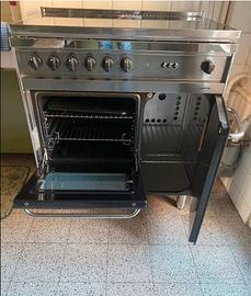 Prezzo: Trattabile Bellissima cucina Lofra MX85G/C in acciaio, 5 fornelli, forno a gas e scomparto laterale in ottime condizioni. Coperchio in cristallo temperato che quando chiuso preserva i fornelli e può diventare spazioso piano di appoggio. Utilizzabile sia da rete metano, sia con bombola (scomparto laterale). Acciaio inox Utilizzata pochissimo Valore nuova 1400€ Tipo di prodotto : Cucina freestanding Larghezza : 800 mm Profondità : 500 mm Altezza (min.) : 85 cm Altezza : 905 mm Posizione di controllo : Frontale Porta di vetro rimovibile : Sì Tipo di accensione elettronica : Accensione con manopola Tipo di piano cottura : Gas Piano cottura : lucidato a specchio Numero di forni : 1 Posizione del forno : In basso a sinistra Sorgente di alimentazione del forno : Gas Numero di piani cottura utilizzabili contemporaneamente : 5 Facile da pulire (forno) : Sì capacità lorda: 101 lt Dimensioni interne del forno (AxPxA) : 450 x 360 x 400 mm Materiale della porta del forno : Vetro Numero di pannelli di vetro : 3 Grill elettrico: Sì Luce interna : Sì Apertura della porta del forno : Apertura dall'alto in basso Materiale di supporto della pentola : Ghisa Timer: Sì - Meccanico Piedini regolabili : Sì Colore del prodotto : Acciaio inossidabile Colore della maniglia : Acciaio inossidabile Considerato il peso si consiglia ritiro su Milano
