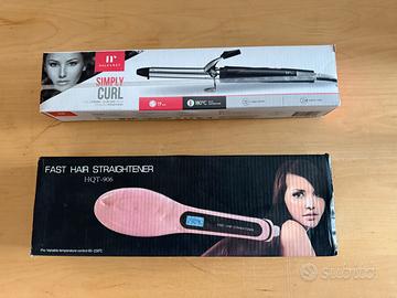 Vendo kit composto da spazzola elettrica lisciante per capelli mod Simply Curl. HQT-906 digitale (colore viola) e arricciacapelli. La spazzola è stata utilizzata una sola volta e poi riposta nella sua scatola; l’arricciacapelli è nuovo con scatola ancora sigillata. Il prezzo è riferito alla coppia.