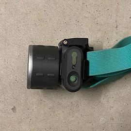 Luce frontale con torcia, con fascia regolabile da indossare sulla testa per illuminare a distanza e lasciare libere le mani.