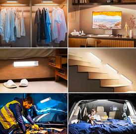 OUILA Luce Armadio LED, Armadio Led con Sensore di Movimento, 20.5CM Magnetica Ricaricabile Luce Led Sottopensile Dimmerabile Lampada per Cucina Scale Soggiorno Bagno Camere da Letto