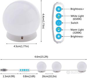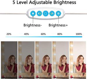 ?10 Lampadine LED Dimmerabili?: La luci da specchio per il trucco fornisce una luminosità sufficiente per il trucco al buio. Le lampadine 3200K-6500K sono consigliate da truccatori professionisti.Lampadine LED con paralume morbido in PC a sfera che rende la luce abbastanza morbida da completare il trucco e la vestizione perfetti e non danneggerà i tuoi occhi.Puoi truccarti in condizioni di scarsa illuminazione o buio aree, senza disturbare gli altri.