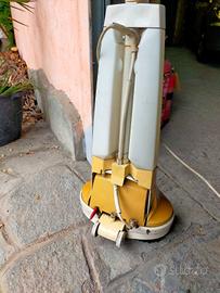 Lucidapavimenti Hoover d’epoca, modello originale con doppia spazzola rotante. Ideale per superfici dure come marmo, parquet o cotto. Struttura solida, design retrò con manico pieghevole e cavo avvolgibile.
