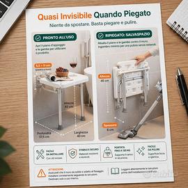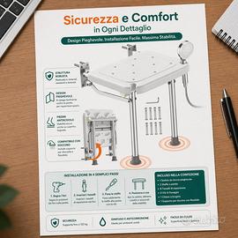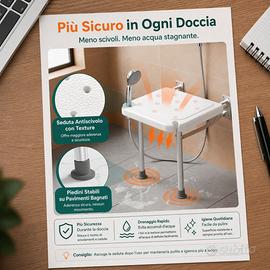 Garantisci sicurezza e comfort nel tuo bagno con il Sedile Doccia Ribaltabile Luckfaith LC13. Progettato specificamente per anziani, disabili e persone con mobilità ridotta, questo supporto combina robustezza e un design intelligente per trasformare la doccia in un ambiente privo di rischi. Massima Robustezza e Stabilità A differenza dei classici sedili a parete, il modello LC13 è dotato di gambe di supporto in alluminio rinforzato (spessore 12 mm). Questa struttura a doppia gamba permette di scaricare il peso a terra invece di sollecitare solo la parete, garantendo una portata massima di 158 kg. I piedini in gomma antiscivolo assicurano che la sedia rimanga saldamente in posizione anche su superfici bagnate e insaponate. Design Salvaspazio e Discreto Ideale per bagni compatti o docce walk-in, il sedile è completamente richiudibile. Quando non in uso, si ribalta contro la parete occupando uno spazio di soli 6 cm, lasciando l'area doccia libera per gli altri membri della famiglia. Il colore bianco e le linee pulite lo rendono un accessorio discreto che si integra perfettamente in ogni stile di arredamento. Comfort e Igiene La seduta ergonomica presenta una superficie testurizzata che previene lo scivolamento accidentale. I fori di drenaggio integrati permettono all'acqua di defluire rapidamente, migliorando il comfort durante il lavaggio e facilitando una rapida asciugatura dopo l'uso, prevenendo la formazione di muffe. Installazione Rapida e Precisa All'interno della confezione troverai tutto il necessario per un montaggio a regola d'arte: Dima di posizionamento per fori precisi al millimetro. Viti e tasselli di alta qualità. Chiave esagonale per il serraggio. Specifiche Tecniche: Marca: Luckfaith Materiale: Plastica ABS ad alta densità e Alluminio Portata: 158 kg Caratteristiche: Ribaltabile, antiscivolo, con gambe di supporto.