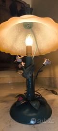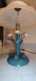 Lume Vintage Ferro Battuto realizzato a mano da Maestro Fabbro H. Cm 38 addobbato con Fiori Porcellana Capodimonte e foglie in ferro. Attacco lampada E14.
