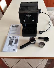Macchietta per caffè Gaggia Style Possibilità di preparare ottimo caffè espresso sia con polvere sia con cialde 1 o 2 tazzine Pressione pompa 15 bar Serbatoio acqua estraibile 1,25 litri Vassoio raccogli gocce removibile frontalmente Comandi frontali Dimensioni 210x300x280 Peso 3,9 kg Ottime condizioni Manca pennarello per cappuccino