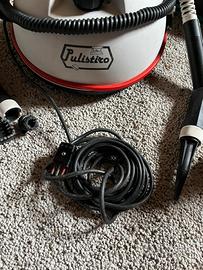 Caldaia a vapore con ferro da stiro, varie spazzole e riduttori per pulire ogni superficie e spazio. Tutto richiudibile im un borsone. Marca Essebi