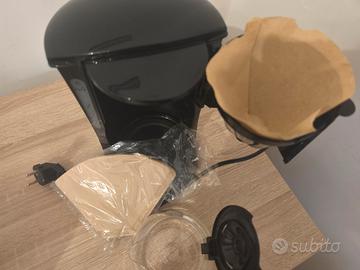 Macchina per caffè americano Moulinex, modello Principio. Caraffa in vetro, 0.6 L, Indicatore di accensione, potenza 600 watt, sistema anti goccia, porta filtro amovibile, pratico accesso al serbatoio dell'acqua e ben visibile livello. In dotazione anche filtri monouso.