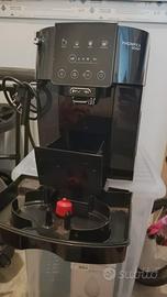 Vendo macchina per il caffè semiautomatica De'Longhi Magnifica Start usata pochissimo (modello FEB2522.B), finitura nero lucido. Perfetta per chi ama il vero espresso italiano con chicchi macinati freschi al momento, molto pratica e con un ottimo risparmio a differenza di capsule e cialde. Macina caffè integrato: Macine in acciaio ultra resistenti con 13 livelli di regolazione della macinatura. Pannello Soft-touch: Comandi intuitivi per scegliere tra Espresso, Caffè classico o Americano con un solo tocco. Montalatte a vapore: Lancia vapore per preparare schiume cremose per cappuccini o scaldare l'acqua per tè e infusi. Personalizzazione: Puoi regolare l'intensità dell'aroma e la temperatura del caffè. Manutenzione facile: Gruppo infusore removibile per una pulizia profonda e programmi automatici di decalcificazione. Specifiche Tecniche: Pressione: 15 bar (per un espresso perfetto), Contenitore chicchi: 250g, Serbatoio acqua: 1,8 litri (molto capiente). Funzione "x2": Prepara due caffè contemporaneamente. Stato del prodotto: Macchina tenuta bene, decalcificata regolarmente e perfettamente funzionante. Esteticamente impeccabile come da foto.