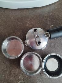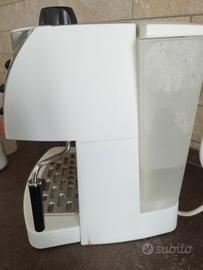 Macchina caffè perfettamente funzionante, adatta per caffè in polvere e con cialde di carta, con cappuccinatore. Usata poco. Unici difetti sono estetici: - pulsante accensione sbiadito - perdita di vernice sul piattino porta tazze - segni di usura sul braccetto ma che non compromettono assolutamente la funzionalità Si vende con braccetto e filtri originali (Filtro per 1 tazza con polvere, 2 tazze con polvere, 1 tazza con cialde di carta Ese). Senza scatola originale