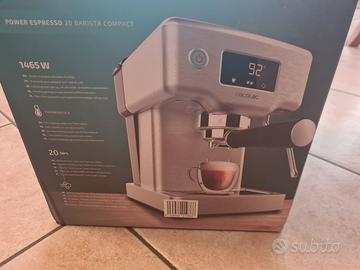 vendo macchina da caffè Barista Cecotec Power 20 per caffè macinato ,condizioni pari al nuovo (vedi foto) utilizzata alcune settimane e poi rimessa in scatola , dal design elegante in acciaio inx spazzolato. Potenza massima di 1465 W Il sistema di riscaldamento rapido Thermoblock garantisce che la temperatura rimanga nel suo intervallo ottimale per ottenere il miglior caffè e una potente pompa a pressione con tecnologia Force Aroma da 20 bar che ottiene la migliore crema e il massimo aroma. Include vaporizzatore orientabile con protezione che testurizza il latte e ti offre la migliore schiuma. Inoltre, emette acqua calda alla temperatura ideale per le infusioni. Braccio portafiltri con doppia uscita e due filtri per preparare automaticamente fino a due caffè. Serbatoio dell'acqua rimovibile con capacità di 1,8 litri. consegna a mano anche per provarla e bere un caffè con una cremina pazzesca - NON SPEDISCO - Documento d'acquisto per la garanzia fino a ott 2027-