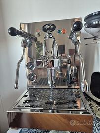 Pari al nuovo, vendo per inutilizzo macchina di caffè Brugnetti Viola. Gruppo erogatore E61 in ottone cromato Tubo dell'acqua calda isolato - freddo al tatto Tubo del vapore isolato - freddo al tatto Riscaldamento elettrico con pressostato automatico regolabile Pompa a vibrazione, controllo elettronico dei livelli dell'acqua in caldaia e nel serbatoio Caldaia in rame, struttura solida interamente in acciaio inox Prodotta in Italia Capacità caldaia - 1,5 l Resistenza - 1400W Capacità serbatoio acqua - 2,0 l Peso - 25 kg Dimensioni - 260 mm di larghezza x 430 mm di altezza x 440 mm di profondità Corpo in acciaio inox Compreso di imballo originale.