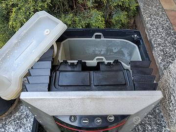 MACCHINA LAVAZZA EP 2100 PININFARINA Attenzione: Macchina Non Funzionante (perde acqua dalla camera di erogazione / caldaia) PER COLLEZIONISTI AMATORI RIPARATORI La ricerca Lavazza e il design by Pininfarina hanno creato un piccolo grande capolavoro del gusto. Lavazza EP 2100 è compatta, versatile, facile da usare e adatta ad ogni ambiente. Grazie al pratico sistema a capsule e all'elevata automazione, gustare la tua bevanda preferita non è mai stato così facile. Alimentazione elettrica 230 V; 50 Hz. Potenza nominale 630 W. Materiale policarbonato. Capacità serbatoio acqua 3500 cc. Sistema automatico di controllo del livello dell'acqua. Funzionamento esclusivo con capsule Lavazza Espresso Point e compatibili. Avvio automatico dell'erogazione. Espulsione automatica della capsula usata. Cassetto raccoglitore fino a un massimo di 30 capsule usate. Caldaia a secco con ritorno nel serbatoio. Larghezza 31 cm. Altezza 35 cm. Profondità 28 cm. Peso 9,5 kg. Questa macchina è ideale per consumazioni da 8 a 20 caffè giornalieri. Adatta per ufficio e piccola azienda.