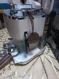 De Longhi Icona Vintage Nuova mai usata. Può essere utilizzata sia con caffè in polvere (macinato) che con le cialde. Specifiche Tecniche: Pressione della pompa: 15 bar. Potenza: 1100 W. Serbatoio dell'acqua: Estraibile e trasparente, con una capacità di 1,4 litri. Caldaia: Realizzata in acciaio inox per una maggiore durata. Funzioni Extra: Spegnimento automatico dopo 9 minuti di inutilizzo per il risparmio energetico e ripiano scalda tazze sulla parte superiore.