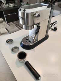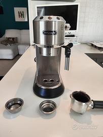 Vendo macchina per il caffè De'Longhi Dedica EC685.M in ottime condizioni, come visibile in foto. La macchina è compatibile con caffè in polvere e cialde E.S.E., ideale per chi vuole un caffè espresso o un cappuccino come al bar, direttamente a casa. Contiene Adattatore per cialde E.S.E. Filtro per il caffè macinato da due tazze.