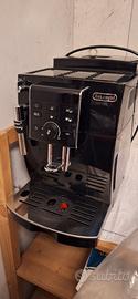 Macchina da caffè della Ditta De Longhi. Color nero e finiture cromo. La macchina può utilizzare caffè in grani che macina al momento oppure caffè in polvere pronto per l'uso.