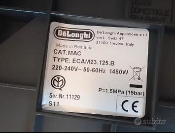 Macchina caffè DeLonghi ecam 23.125.B perfettamente funzionante come nuova. Vendo per inutilizzo.