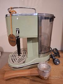 macchina caffè automatica Delonghi mod. Icona, a cialde ed a caffè in polvere. Color verde salvia. Stile vintage. completa di tutto, con 3 cups per cialda, pozione 1 caffè, doppio caffè in polvere. prezzo in negozio 160euro, vendo per regalo non gradito.