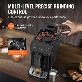 Macinino integrato e macinatura regolabile: la macchina per caffè espresso automatica è dotata di un macinino integrato e di una spaziosa tramoggia per chicchi da 180 g, che ti consente di trasformare i tuoi chicchi in espresso in pochi secondi. Con 15 impostazioni di macinatura tra cui scegliere, personalizzare il tuo caffè in base alle tue preferenze di gusto è semplicissimo.